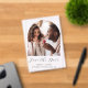 This simple, minimalist Save the Date card features a boho photo arch above the words "Save the Date" in elegant black handwriting script, followed by the couple's names, wedding date and city in sans serif font on a clear background.