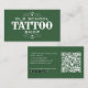 Make a bold first impression with this classic, minimal tattoo business card. Featuring a striking black or green background with a vintage-inspired font and ornamental flourishes, this design exudes professionalism and timeless charm. Whether you're an experienced tattoo artist or just starting your journey, this card reflects your dedication to the art and tradition of tattooing.