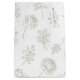 A delicate seamless floral pattern gift bag featuring elegant line art illustrations of wildflowers, leafy stems, and tiny berry branches on a clean white background. This minimalist botanical design uses soft neutral tones and fine outlines to create a calm, modern aesthetic.