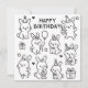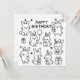 Featuring a group of hand-drawn bunnies celebrating with balloons, cupcakes, and gifts, this sweet line-art design brings a soft, minimalist charm to any birthday occasion.