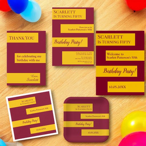 Minimal Burgundy And Gold Elegant 50th Birthday Invitation