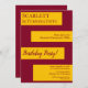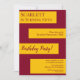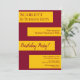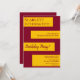 This elegant burgundy and gold Birthday invitation is perfect for a modern Birthday. the simple design features elegant burgundy calligraphy on gold stripes on a burgundy background.