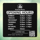 Opening Times | Business Logo Opening Hours Black Window Cling