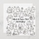 Featuring playful hand-drawn cats, balloons, and cakes in a clean line-art style, this square card brings cheerful simplicity and a touch of fun to every birthday wish.