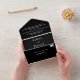 This elegant black and white wedding invitation is perfect for a modern wedding. the simple design features elegant white calligraphy on a black background.