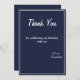 This elegant navy blue and white birthday Thank You Card is perfect for a modern birthday. the simple design features elegant white calligraphy on a navy blue background.