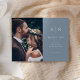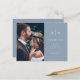 These elegant, modern wedding thank you postcards feature a simple white and dusty blue text design that exudes minimalist style, with your favourite personal wedding photo. Add your initials or monogram to make them completely your own.
