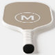 Masculine modern design features beige background with easy to use template for a single letter in stylish classic block typography. The design repeats on the reverse side. Perfect pickleball gift for him.