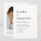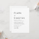This modern, minimal wedding invitation exudes contemporary elegance with its sleek black and white theme. The simplicity of the design creates a timeless look that is perfect for couples seeking a minimal, polished touch for their special day. The monochromatic colour scheme adds a sense of chic sophistication, while the clean lines and minimalist details embody a classic aesthetic. This invitation is ideal for couples who would appreciate a refined, contemporary style that will set the tone for a memorable and stylish wedding celebration! Featuring a QR code on the back for RSVP and details info, this piece offers a wonderful all in one invitation package on a single card!