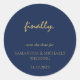 Minimal Clean Gold Navy Script Finally Save Date Classic Round Sticker