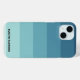 Beautiful elegant minimal custom phone case design featuring a colour block gradient (blue/cyan/teal/acqua) in pastel water hues and personalised monogram or name in sophisticated retro typographic font. Cute stripes aesthetics with grey big bold text.