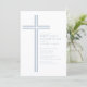 Celebrate a meaningful milestone with this elegant minimal blue First Holy Communion invitation. Featuring a refined linear cross and soft blue striped accents, this design offers a clean, modern interpretation of a timeless religious tradition.
