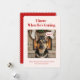 Bring humor and heart to the holidays with this funny pet Christmas card featuring a loyal dog on Santa watch by the fireplace. Perfect for families and dog lovers, this funny family dog Christmas card adds a playful touch to your greetings with its candy stripe back and cheerful red tones. Personalize the name or message for a warm, whimsical finish. Customize yours today for a joyful holiday mail.