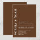 This invitation features a chic dark brown background with a minimalistic design. The names of the couple are highlighted in bold, elegant typography, adding a touch of modern elegance to the invitation.