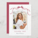 Minimal Deep Blush Bow Graduation Photo Thank You Card