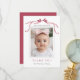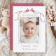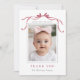 Minimal Deep Blush Pink Bow Birthday Photo Thank You Card