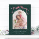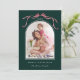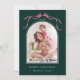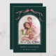 Minimal Deep Blush Pink Bow Christmas Photo Green Holiday Card