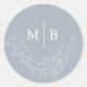 Minimal Dusty Blue Botanical Monogrammed Wedding Classic Round Sticker