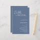 Modern dusty blue wedding program featuring a simple and minimal design with the bride's name in an elegant script and the groom's name in a contemporary sans serif font. Below in the lower right corner are your event details and order of ceremony in a minimalist layout. The back has your wedding party and thank you message.