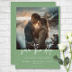 This wedding save the date card design features a dusty sage green background and is the perfect canvas for your favourite couple photo. The simple details appear in white text. The back features the couple's first names. Unique and elegant, this design can be used for any season. Created by Simply Farmhouse Press.
