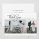Minimal and simple design Wedding thank you card features a script font with a modern and clean typographical design in a classic black and white theme. This card is ready for you to customise with your own photos, name and personalise the message.