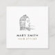 Elegant, customizable business card template featuring a dark or white background with subtle dark grey bobby pin accents. Minimalist design tailored for hair studios and professional stylists.
