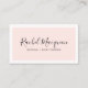 This minimal and elegant business card is perfect for many professional women. It features a black handwritten signature script font, a blush pink background, and a thick white border. It's modern, chic, simple, and stylish; the perfect design to advertise your business.