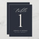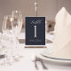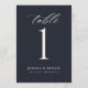 Elevate your wedding reception with these stunning, modern, minimalist, and elegant calligraphy script table numbers. Crafted in classic dark navy blue and bridal heath, these table numbers are the perfect way to guide your guests to their assigned seats. The elegant calligraphy script, featuring your chosen table number, your names, and the event date and location, adds a touch of sophistication and romance.