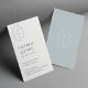 Timeless, classic, and elegant custom monogram business card with a modern minimal aesthetic in dust blue grey. Simple elegant monogram crest with simple typography arranged in a modern layout. **All colours can be changed to suit your brand style. Design by ModnMuseCo