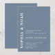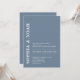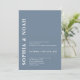 This invitation features a chic dusty blue background with a minimalistic design. The names of the couple are highlighted in bold, elegant typography, adding a touch of modern elegance to the invitation.