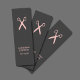 Elegant business card template with dark grey background and pale pink scissor pattern. Minimal and chic design. Perfect for hairstylist, hairdresser, barber.