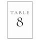 This elegant table number card features a chic serif font, and exudes luxurious, modern simplicity. Perfect for numbering your reception dinner tables. Personalise this template with your table numbers, colour preferences, and more!