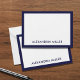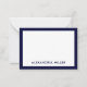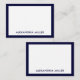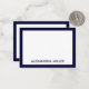 Double-sided timeless custom flat note card design features navy blue and white monogram design with name in the lower thirds, framed in navy. Elegant typography that can be personalised with your name or custom text. Space for your handwritten note is included on the front and back.