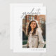 Celebrate your academic accomplishments with this Modern Simple College High School Photo Graduation Announcement. The design is both minimalistic and elegant, making it perfect for showcasing your favourite graduation photos. This announcement is double-sided and customisable, ensuring that it perfectly fits your needs. Simply click "Personalise" to enter your details. This minimalist graduation announcement is perfect for both college and high school graduates. Make your graduation announcement unforgettable with this modern and stylish design.