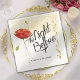 Get Youself Some elegant and beautiful Decorated napkins for your Rehearsal Dinner. The napkins come in a calligraphy modern style with ~THE NIGHT BEFORE~ font. Also, you can customise the name of the bride and the groom. The napkins feature glitter with red Poppy Flower and confetti to make them look so beautiful and elegant.