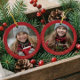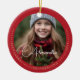 Minimal Elegant Two Photo Collage Keepsake Red Ceramic Ornament