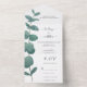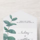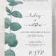 It features an original watercolor eucalyptus sprig in shades of green with elegant calligraphy script.