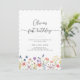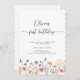 Celebrate a sweet milestone with this elegant first birthday invitation featuring delicate wildflower illustrations and modern handwritten script typography. Designed with a clean white background and soft pastel florals along the bottom, this invitation is perfect for a garden, floral, or “little wildflower” themed birthday party.