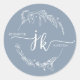 Minimal Floral Wreath Dusty Blue Monogram Wedding Classic Round Sticker