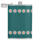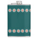 Minimal Flower Border Retro Deep Teal Hip Flask