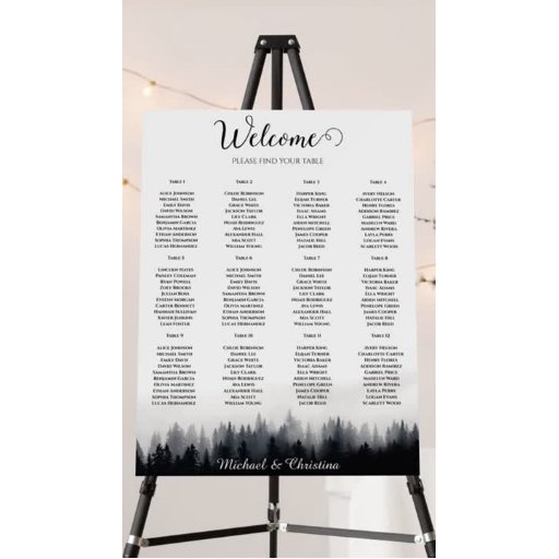 Minimal foggy spruce forest nature wedding place card