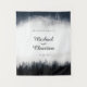 Minimal foggy spruce forest nature wedding. Landscape photograph of fog trapped in between the spruce forest making its way through the branches. Dark black and white. Pesonalizable names and everything you need you can customise.