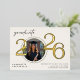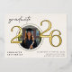 Elegant minimal foil graduation announcement; displaying four images on front and back.