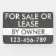Simple dark grey and white for sale or rent by owner outdoor banner that can be customised with your personal text or information. No matter if you want to sell an condo, a house, a motorcycle, a car, boat or a plane. This promotional sign can be easily seen by potential customers.