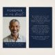 Keep the memory of a loved one close with this custom color personalized prayer card (shown in navy blue) featuring one treasured photo, the title FOREVER IN OUR HEARTS, name and dates and an editable heartfelt remembrance message. With its simple yet elegant classic black and white design and modern handwritten script typography, it makes a meaningful keepsake to share at a funeral, memorial service or Celebration of Life and offers comfort and a lasting tribute for family and friends. Its small and portable size of 3.5x2" (wallet-sized) makes it convenient for loved ones to carry it with them as a reminder of your loved one’s life and spirit. Personalization makes each card unique.
