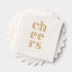 Celebrate in style with these minimal gold foil “cheers” cocktail napkins, designed with a bold vertical layout for a chic, modern touch. Perfect for holiday gatherings, New Year’s parties, weddings, engagement celebrations, birthday parties, and elegant cocktail hours.