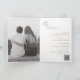 Modern faux gold folded wedding invitation featuring a simple and minimal design with the bride's name in an elegant script and the groom's name in a contemporary sans serif font. Below in the lower right corner are your event details in a minimalist layout. The inside has your favourite photo and your additional details, including an optional QR code (if you prefer, the QR code may be removed in the design editing tool). The back has two more optional sections for more information.