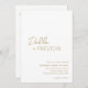 Modern faux gold all in one wedding invitation featuring a simple and minimal design with the bride's name in an elegant script and the groom's name in a contemporary sans serif font. Below in the lower right corner are your event details in a minimalist layout. The back has your additional details and QR Code, so you can skip the enclosure card and RSVP card.