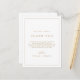 This minimal gold typography thank you reception card is perfect for a simple wedding. The modern romantic design features classic gold and white typography. Customisable in any colour. Keep the design simple and elegant, as is, or personalise it by adding your own graphics and artwork. Place these cards at the table setting for each of your guests at your wedding reception. Personalise the card with your names and a special thank you message.