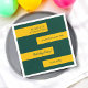 This elegant green and gold napkin is perfect for a modern Birthday. the simple design features elegant green calligraphy on gold stripes on a green background.